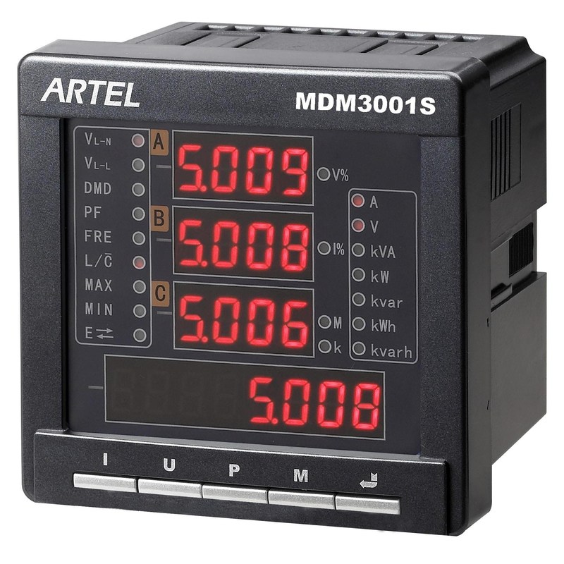 De maatregel en analyseert echt - tijdgegevens, zoals U, I, binnen, P, Q, S, cosΦ,